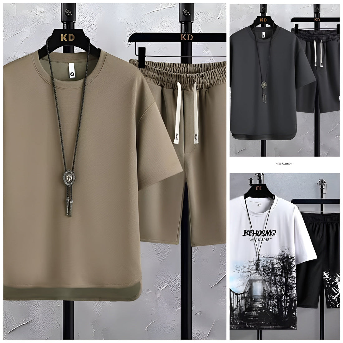 Pack of 3 Men's Summer Sports Suit Tracksuit - Short Sleeves T-Shirts 6535