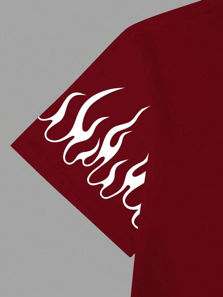 Men's Loose Fit Drop Shoulder With Slogan And Flame Print.
