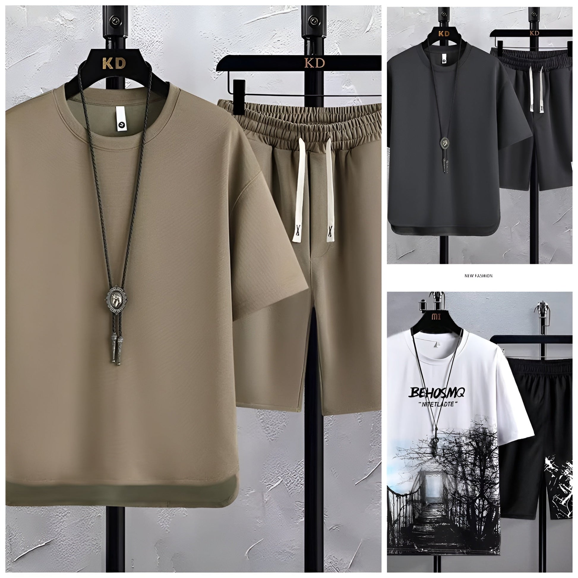 Elevate your summer style with the Pack of 3 Men's Summer Sports Suit Tracksuit - Short Sleeves T-Shirts 6529. This exceptional set, priced at just Rs. 1199, includes two trendy short-sleeve T-shirts and comfortable trousers, making it perfect for casual outings or light workouts.